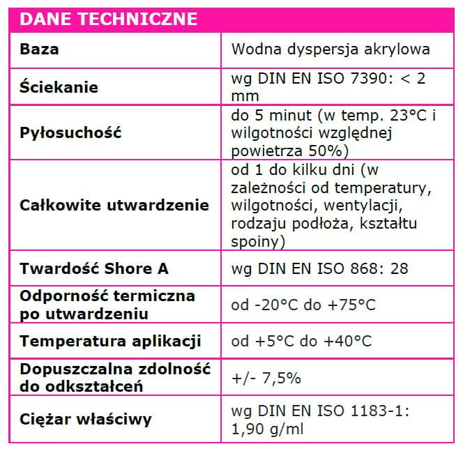 - uszczelnianie naroży i połączeń w zabudowie z płyt g-k, listew wykończeniowych, sufitów podwieszanych, szaf wnękowych, konstrukcji schodów, kasetonów, rozet